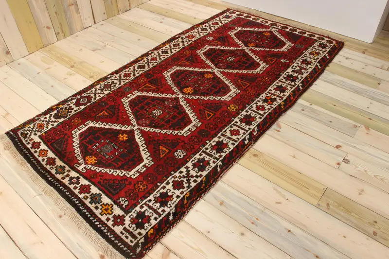 Turkish 4x7.8 ft Rug, Area Vintage Rug, Red Floral Wool Rug