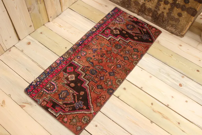 1.5x3.37 ft Rug, Vintage Turkish Rug, Red Blue Striped Rug