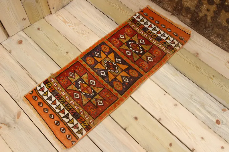 1.2x3 ft Vintage Rug, Rug, Orange Animal Print Rug Wool