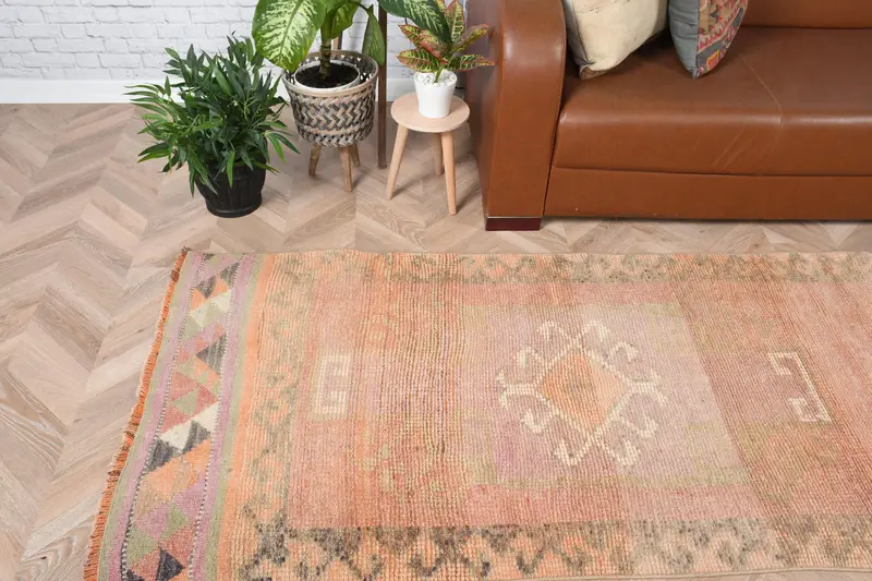 Vintage 3x11.2 ft Rug, Turkish Rug, Orange Striped Wool Rug