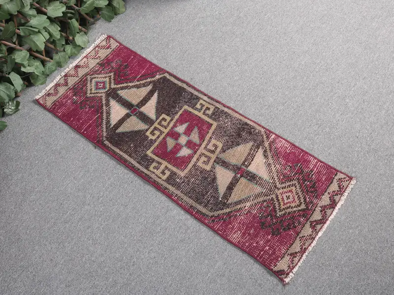 Turkish Vintage Rug 1.1x3.2 ft (35x96 cm), Red Southwestern Rug