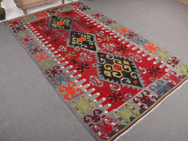 6x10.2 ft Turkish Vintage Rug, Large Rug, Kilim Red Wool Rug