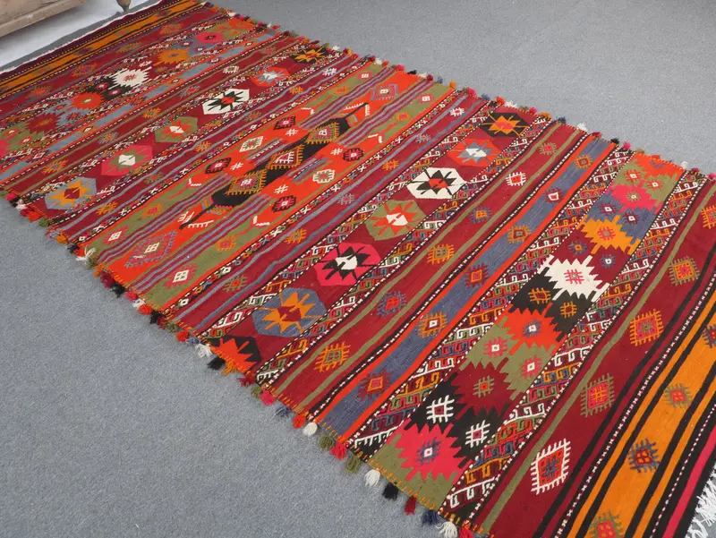 Vintage Turkish Rug 4.7x10.7 ft (144x327 cm), Kilim Red Wool Rug