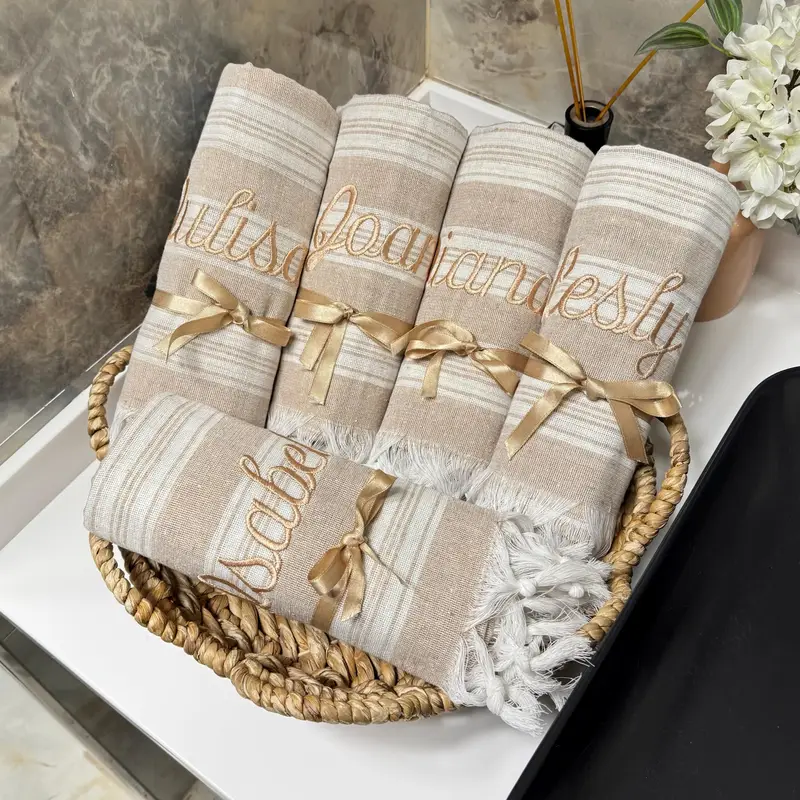Personalized Turkish Cotton Beach Towel Embroidered Monogram, White, 37x65 Inches