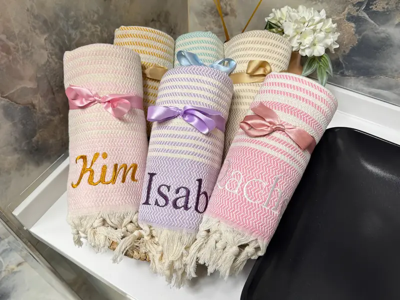 Personalized Turkish Cotton Beach Towel Embroidered Bachelorette Gift, 100x180 cm