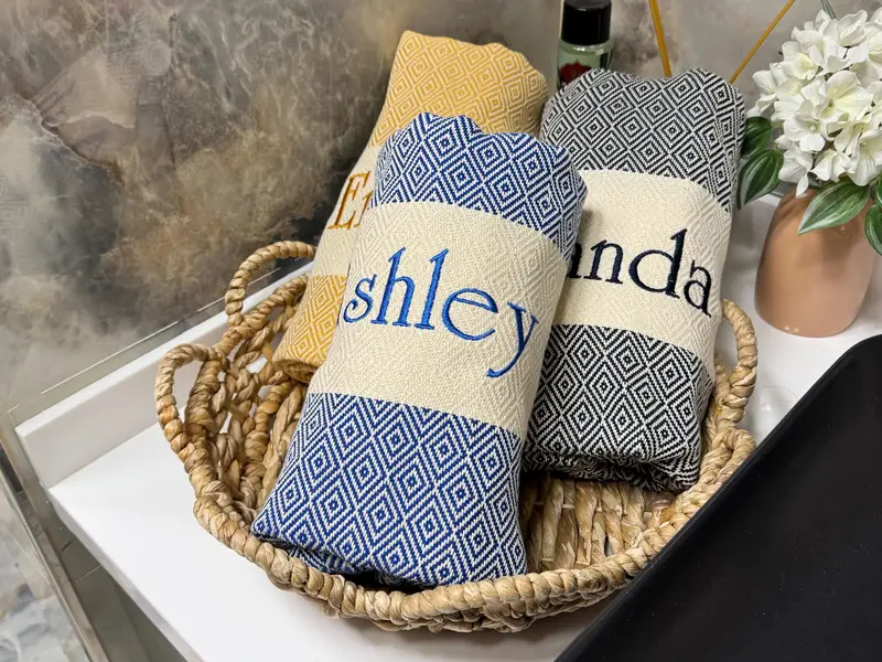 Personalized Turkish Beach Towel Embroidered Cotton Peshtemal, 100x180 cm