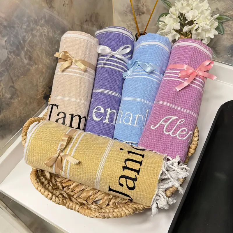 Personalized Turkish Beach Towel Embroidered Cotton White, 100x180 cm