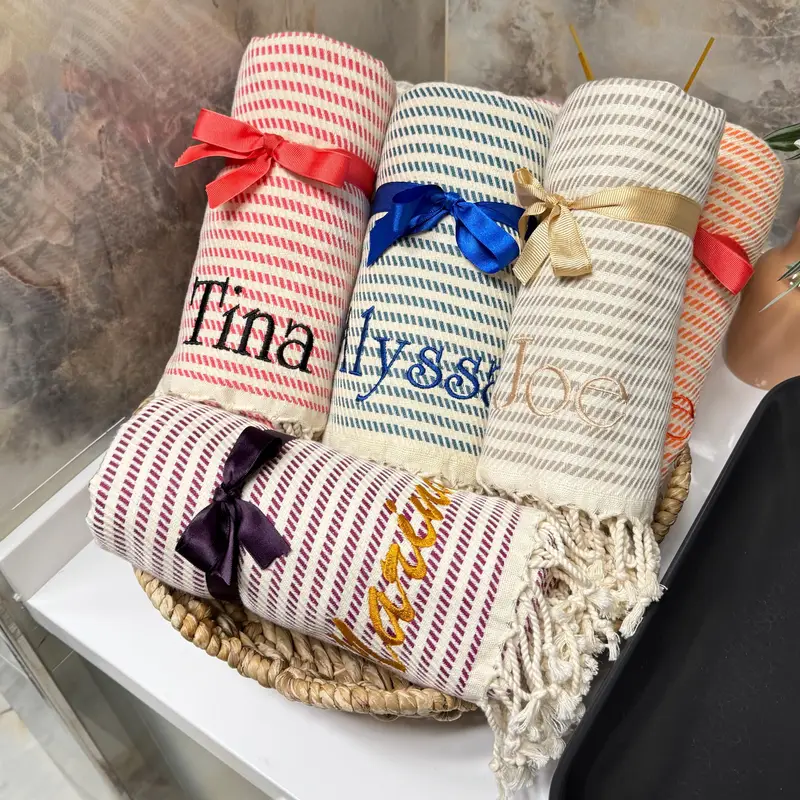 Personalized Turkish Cotton Beach Towel Monogrammed, Beige, 100x180 cm