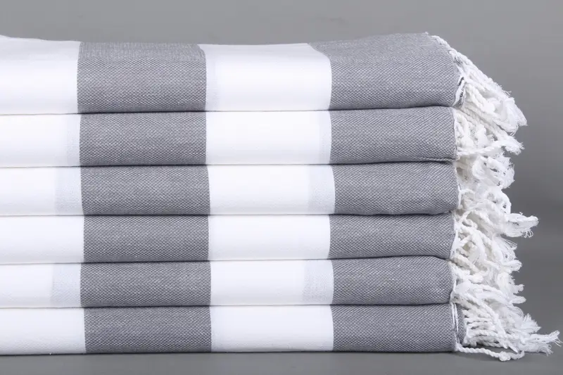 Beach Towel Turkish Cotton Dark Gray-White Stripes, 40x71 Inches