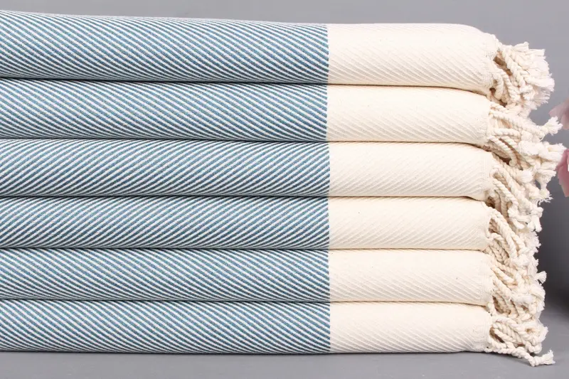 Organic Cotton Beach Towel Petrol Beige Stripes, 40x71 Inches