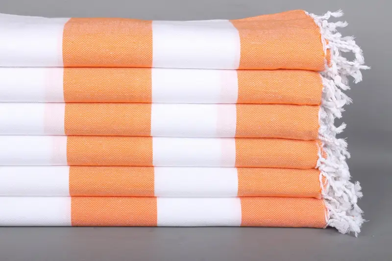 Beach Towel Striped Turkish Cotton Orange-White, 40x71 Inches
