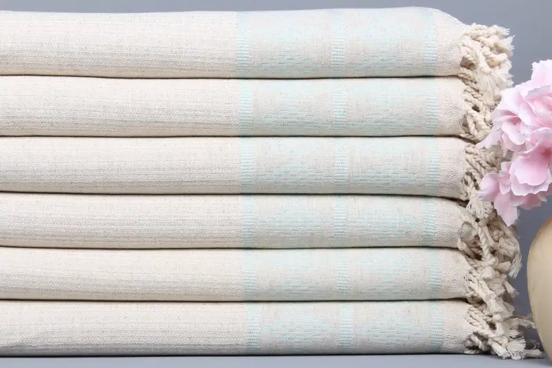 Monogram Beach Towel Organic Cotton Mint Kilim Design, 36x71 Inches