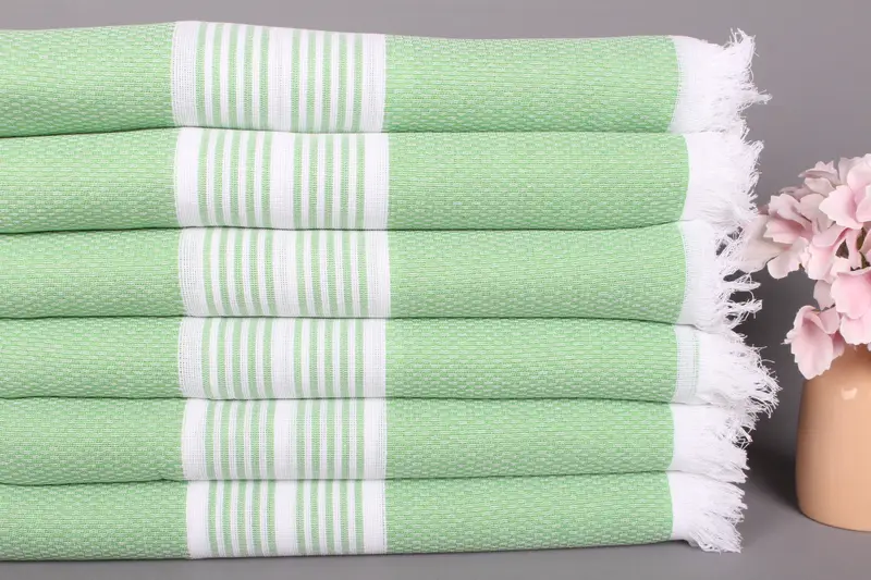 Striped Pistachio Green Organic Cotton Turkish Beach Towel, 40x71 Inches