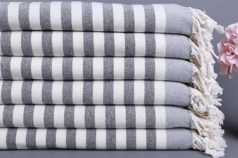 Beach Towel Organic Cotton Gray Stripes, 40x67 Inches