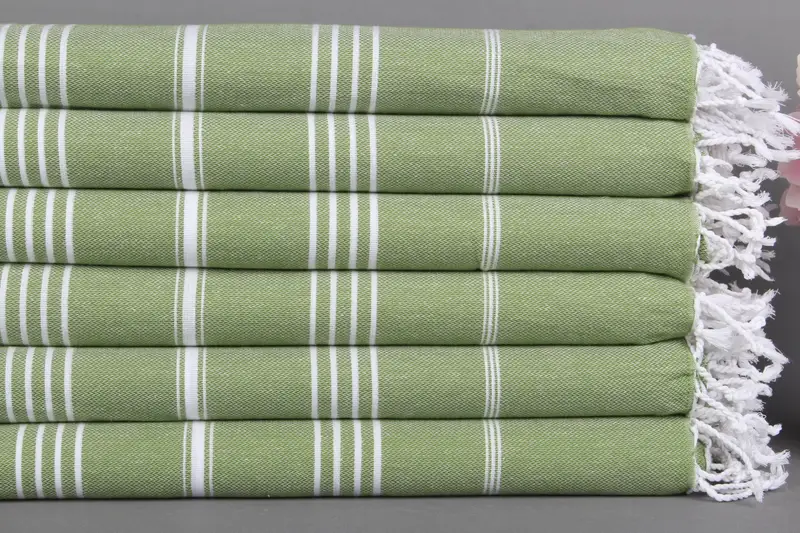 Personalized Embroidered Beach Towel Light Khaki Green Striped, 40x71 Inches