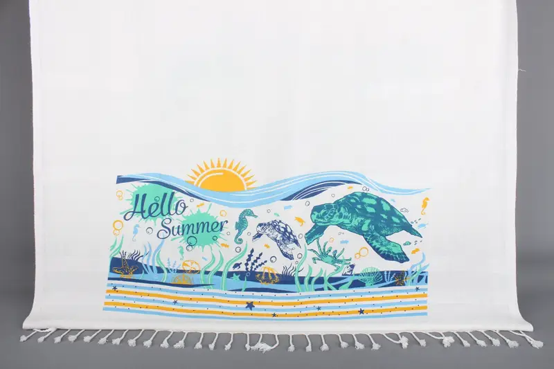 Turkish Bath Towel Yellow-Blue Cotton Beach Towel, 40x71 Inches