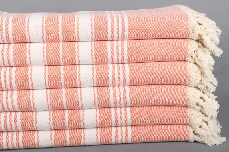Beach Towel Monogrammed Turkish Cotton Orange Herringbone, 40x71 Inches