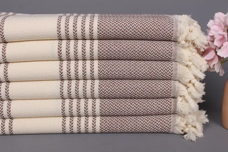 Personalized Turkish Towel Embroidered Cotton Dark Brick, 40x71 Inches