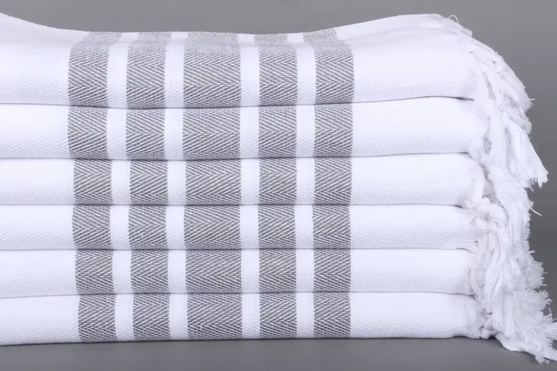 Herringbone Towel Dark Gray Organic Cotton Beach Towel, 40x71 Inches