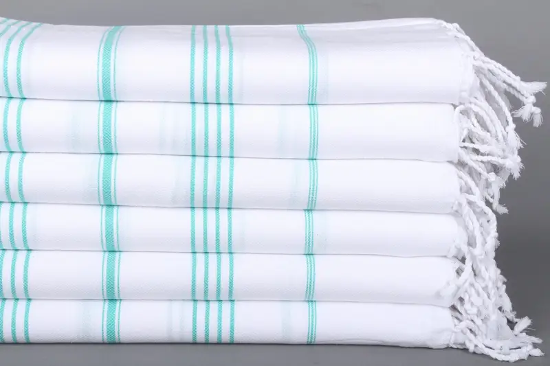 Light Green Cotton Towel Striped, Turkish Beach Towel, 40x71 Inches