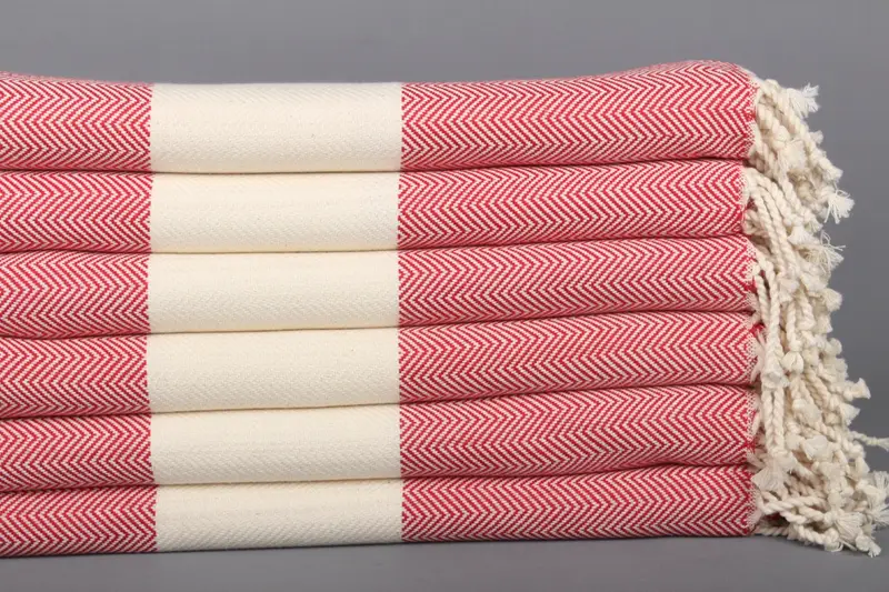 Personalized Herringbone Towel, Red and Beige Cotton, 40x71 Inches