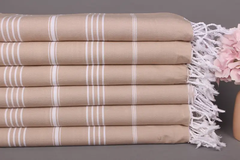 Beach Towel Monogrammed Organic Cotton Beige Stripes, 40x71 Inches