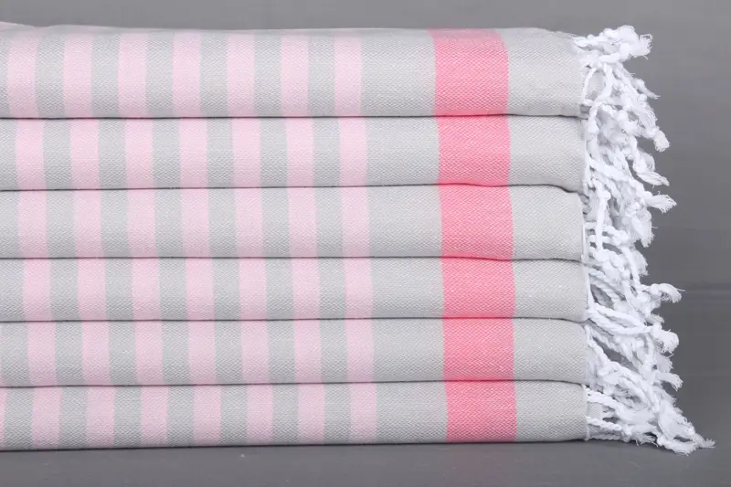 Bridesmaid Gift Turkish Beach Towel Fuchsia-Pink Beige Stripes, 40x71 Inches