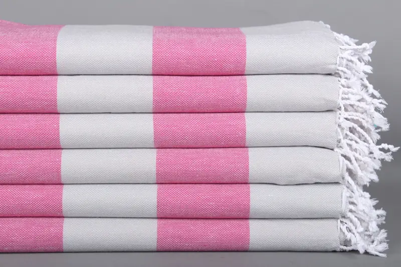 Beach Towel Bridesmaids Striped Turkish Cotton Gray-Fuchsia, 40x71 Inches