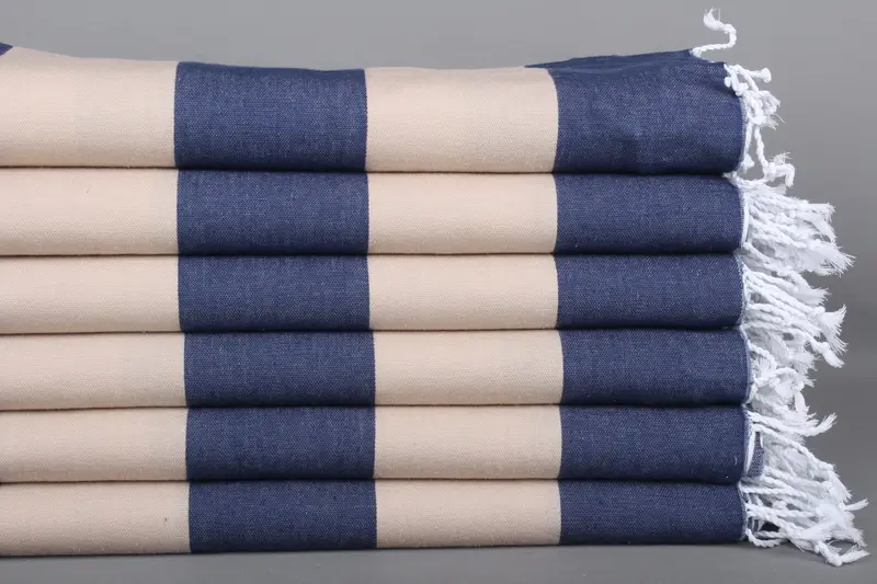 Gift For Him, Navy Blue-Beige Cotton Towel, 40x71 Inches