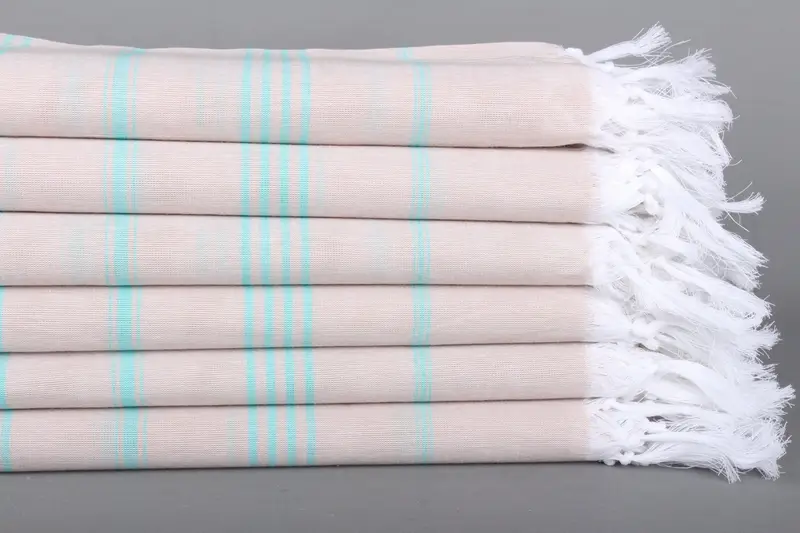 Beach Towel Striped Organic Cotton Beige-Petrol Green, 40x71 Inches