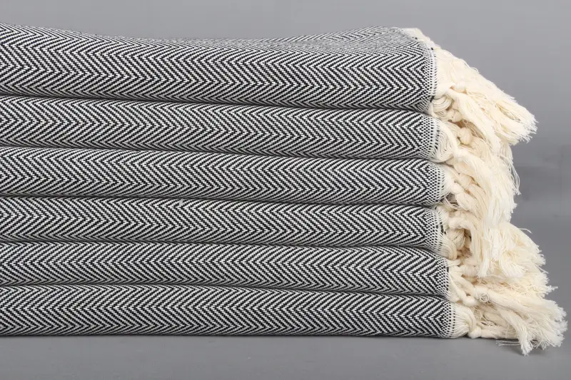 Herringbone Towel Organic Cotton Black and Beige, Beach Towel, 40x71 Inches