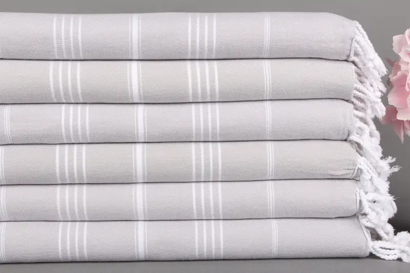 Beach Towel Monogrammed Turkish Organic Cotton Light Gray Stripes, 40x71 Inches