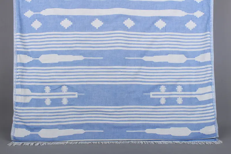 Bridesmaid Gift Towel Blue Cotton Striped, 36x69 Inches