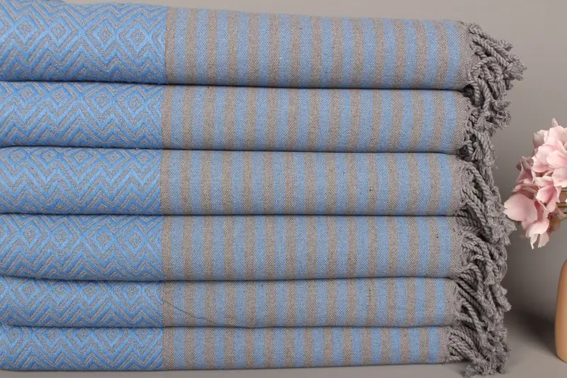 Beach Towel Monogrammed Turkish Organic Cotton Sax Blue, 40x70 Inches