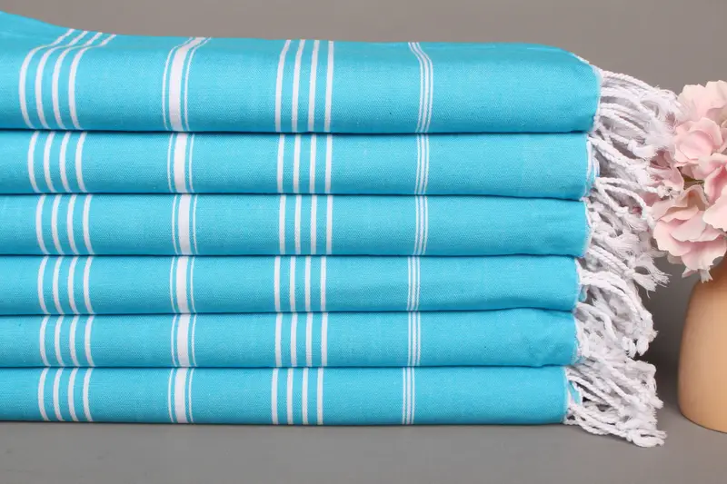 Beach Towel Turquoise Cotton Striped Handmade, 40x71 Inches