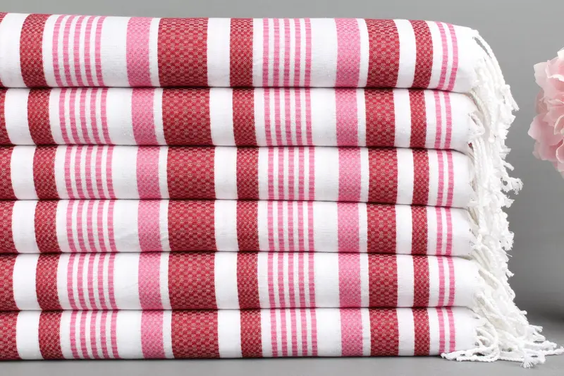 Wholesale Turkish Beach Towel Red-Pink Striped, Organic Cotton, 38x71 Inches