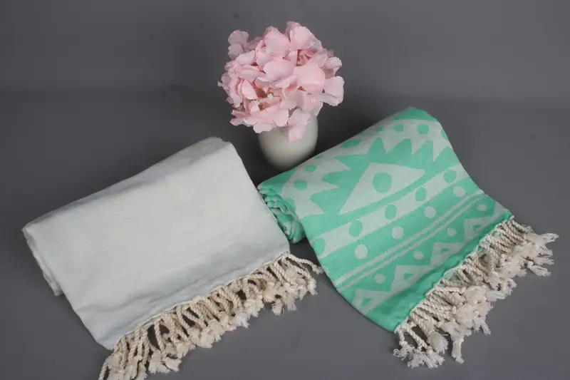 Peshtemal Organic Cotton Beach Towel Beige Round Pattern, 40x71 Inches