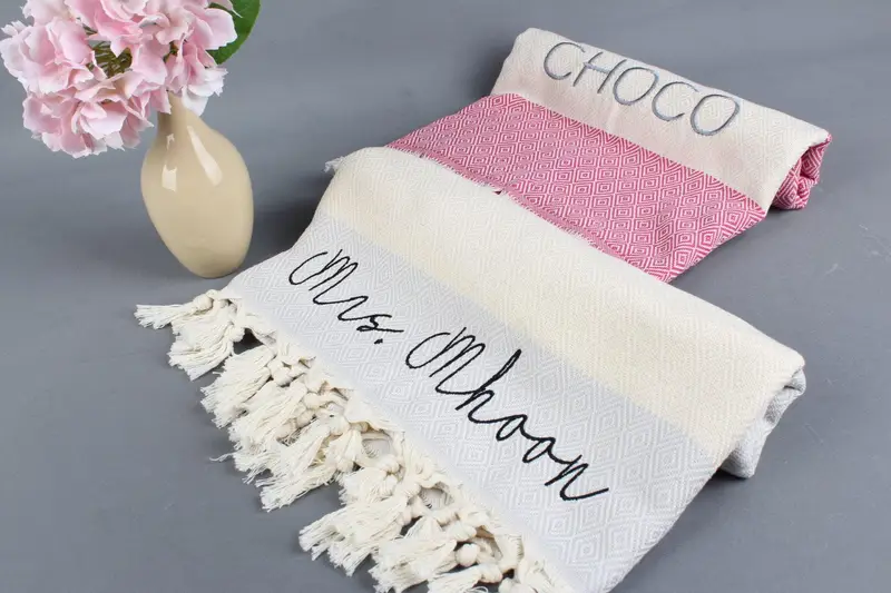 Personalized Turkish Beach Towel Organic Cotton Beige, 40x71 Inches