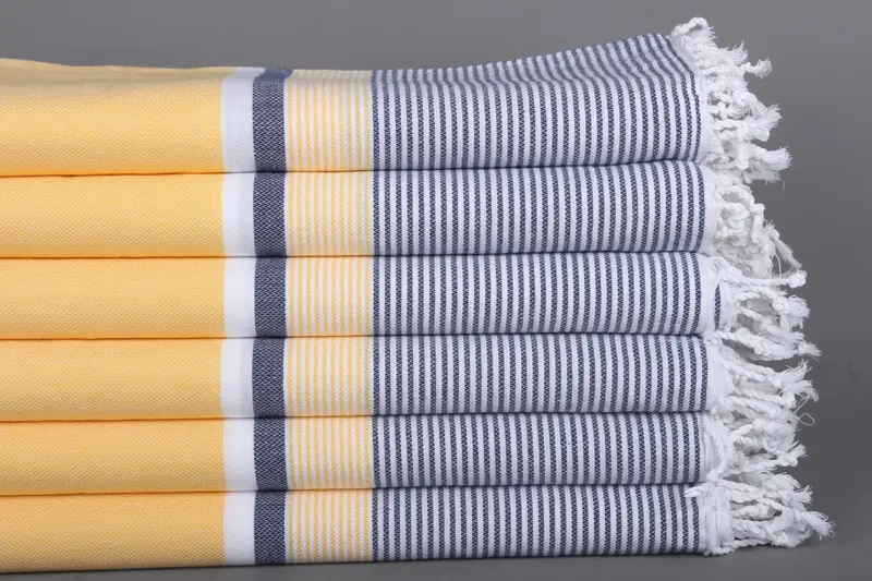 Beach Towel Turkish Cotton Navy Blue-Yellow Stripes, 40x67 Inches