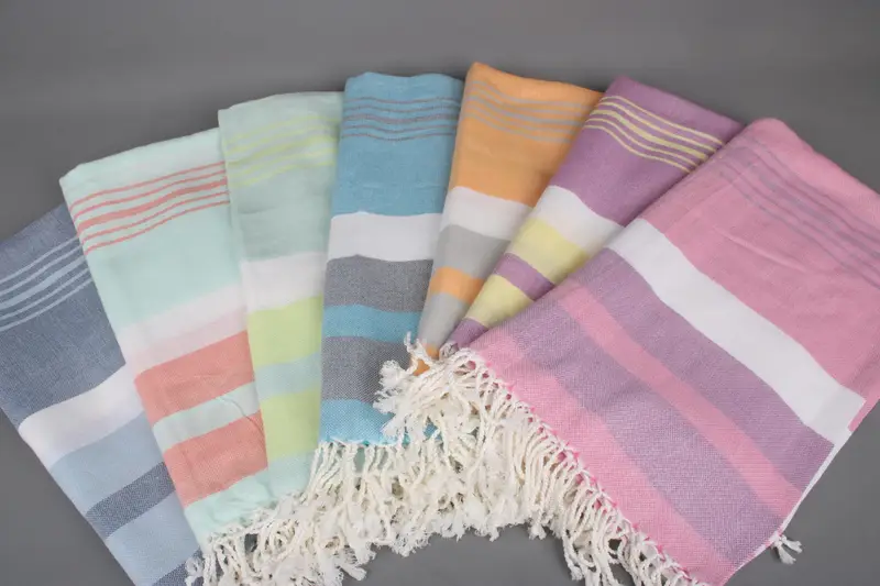 Customized Beach Towel Striped Organic Cotton Beige, 40x71 Inches