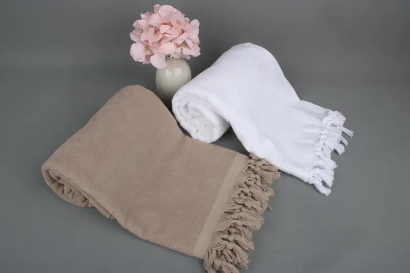 Peshtemal Towel Organic Cotton Solid Beige Beach Towel, 36x67 Inches