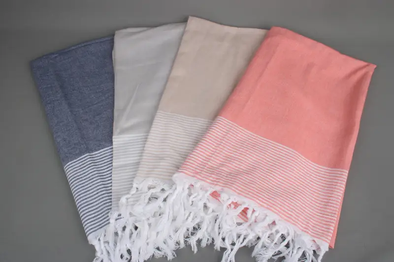 Personalised Beach Towel Organic Cotton Beige Stripes, 40x71 Inches