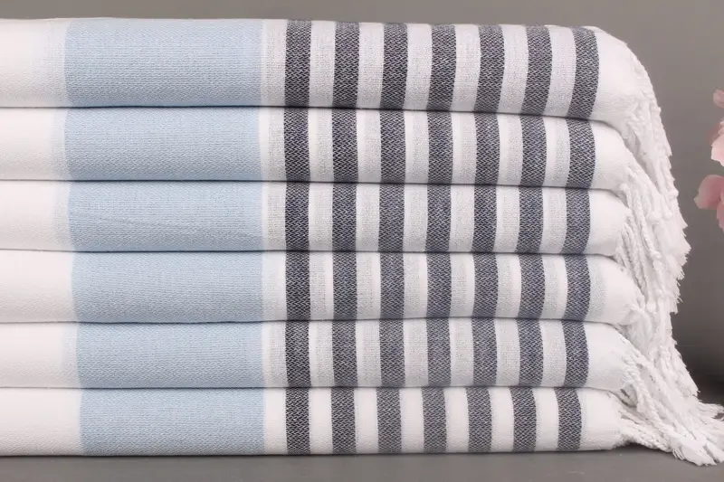 Custom Turkish Beach Towel, Organic Cotton, Baby Blue-Navy Stripes, 40x71 Inches
