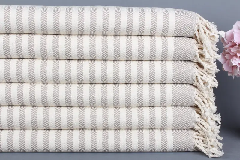 Beach Towel Turkish Cotton Beige Chevron, 40x71 Inches