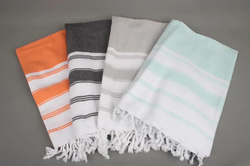 Handmade Turkish Beach Towel Organic Cotton Striped Beige, 40x71 Inches