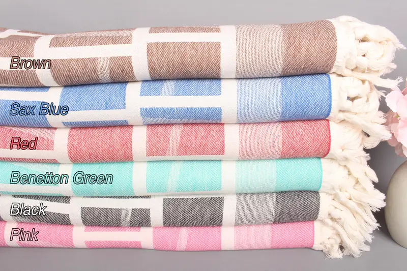 Patterned Organic Cotton Turkish Beach Towel Beige, 34x69 Inches