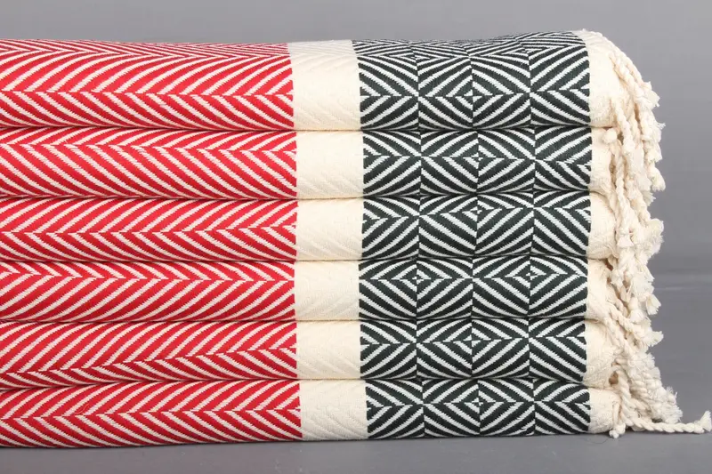 Handmade Monogrammed Turkish Beach Towel Red-Dark Green, 38x83 Inches