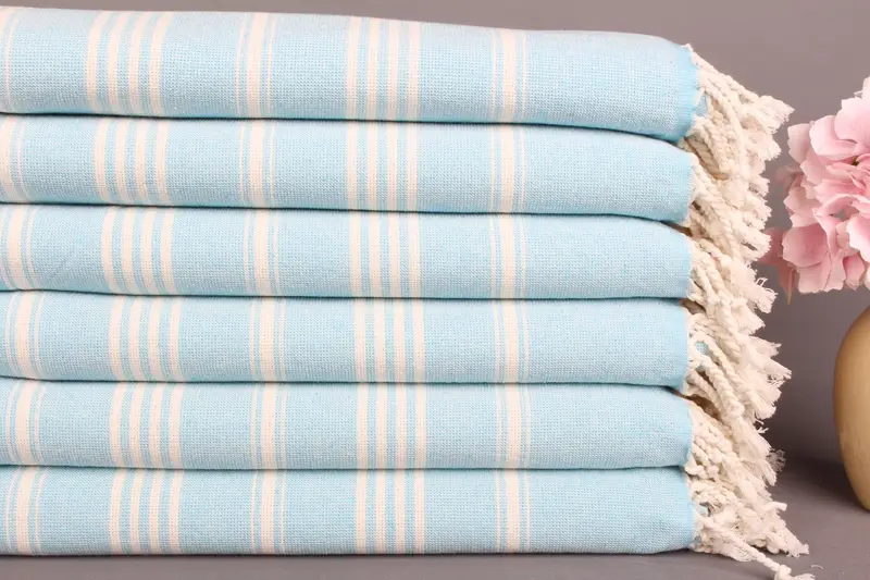 Wedding Gift Towels, Personalized Light Blue Striped Peshtemal, 38x63 Inches