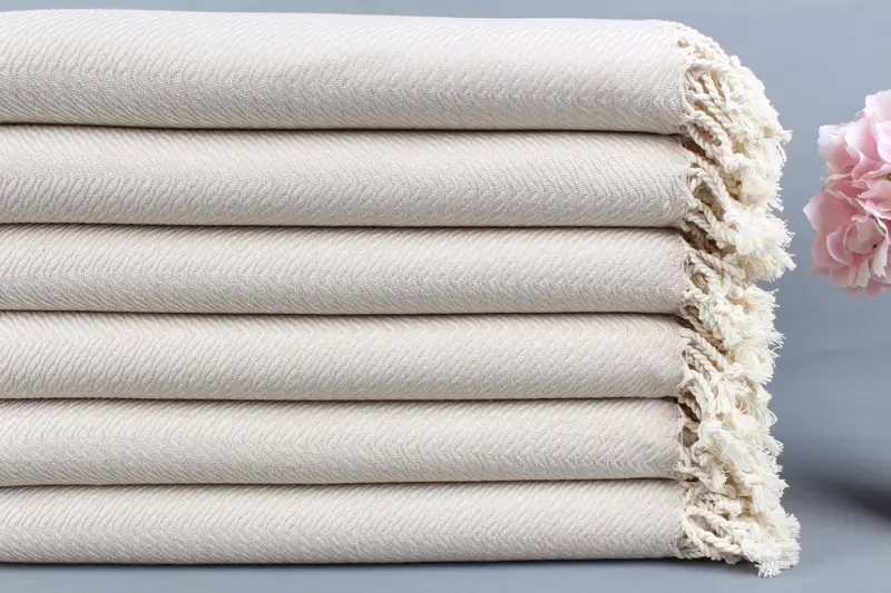Organic Beach Towel Turkish Cotton Beige Chevron, 40x71 Inches