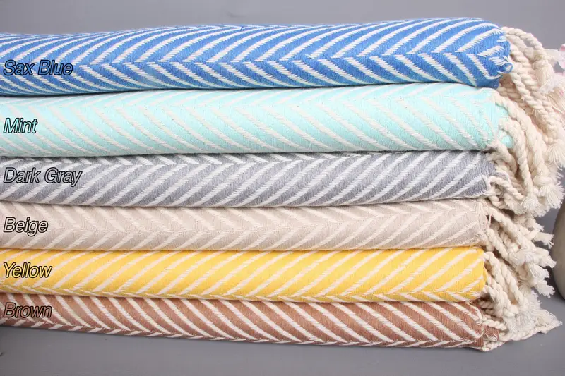 Turkish Beach Towel Organic Cotton Striped Beige, 40x69 Inches